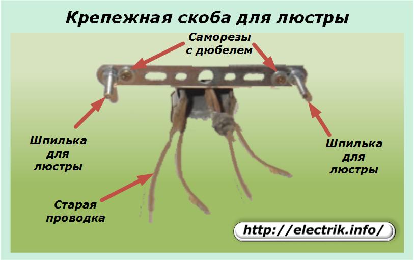 En los edificios de paneles de la antigua construcción, los constructores en el lugar de instalación de la lámpara en el techo mostraban no solo el cableado eléctrico, sino también un pedazo de alambre de acero para instalar una lámpara de araña. En este elemento de construcción, la carcasa de la lámpara también se suspendió.
